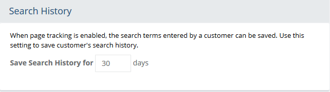 Search HistoryThis setting determines how long to maintain the records of each user's search history.
