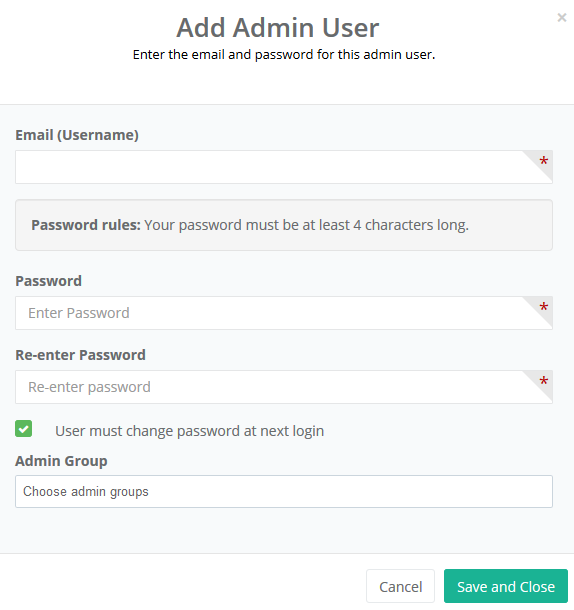 you want to use the same password entered in the form.Assign one or more admin groups to the user.