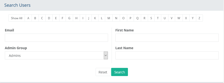 User ManagerTable of Contents ShowHide Search for Admin UsersThe Admin User Manager allows you to search for user records