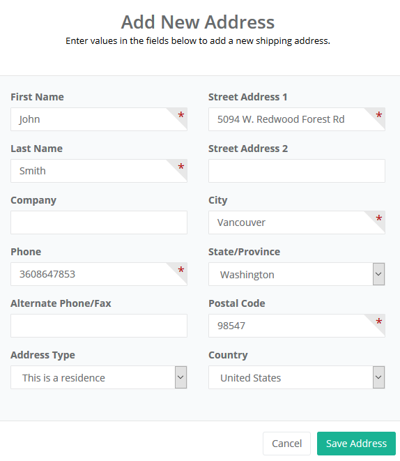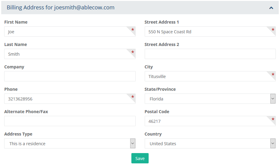 Add or Edit a User's AddressFrom the Addresses tab, you can view, change, or enter the user's billing address.