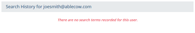 To change the subscription, click the linked subscription name. You will be redirected to the main subscription editing area which is documented separately. See Subscriptions for more information. User's Search HistoryThe Search History tab appears with data when the option to save a user's search terms is activated from the maintenance settings page.