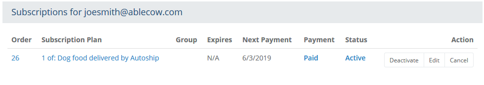 Note: The Page Tracking feature must be enabled for this data to appear. User's SubscriptionsThe Subscriptions tab will display the details for any subscriptions that have been ordered by the user.