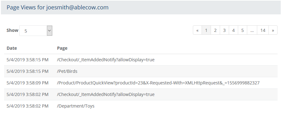User's Page ViewsA history of each user's access to pages within the store will be available from the Page Views tab.