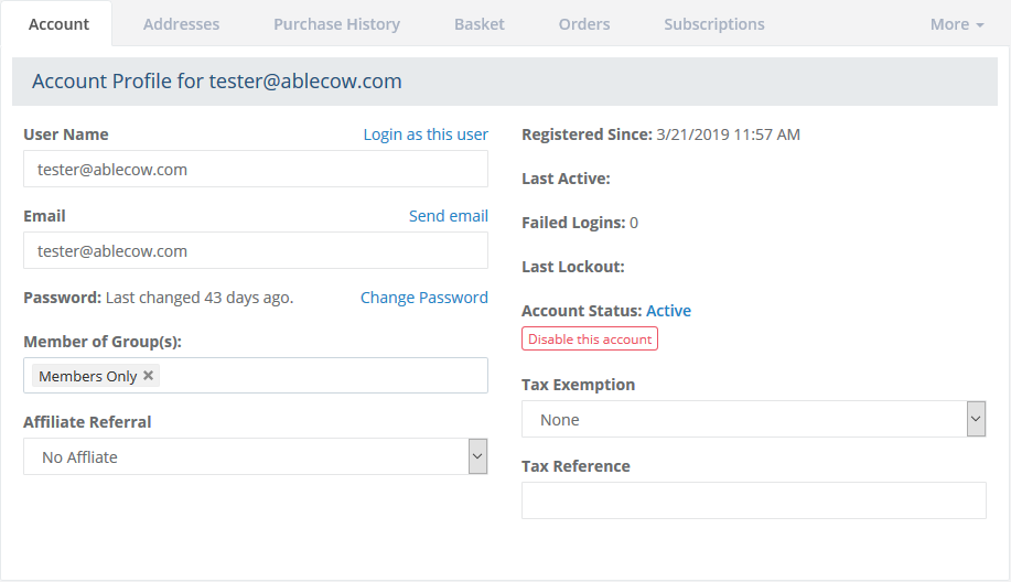 - the user's email address with a link to edit the user's