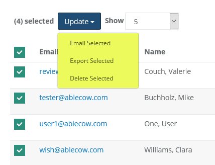 button which will drop-down to provide an option to Delete Selected users.