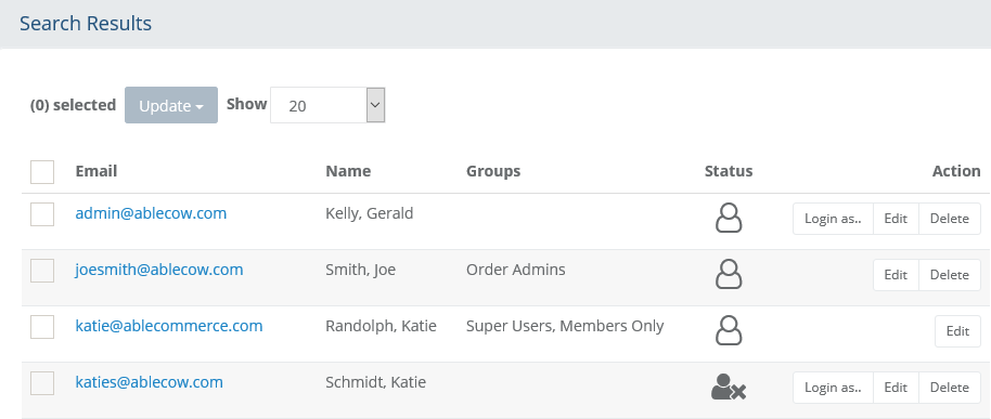 Using the search form, find the users that you want