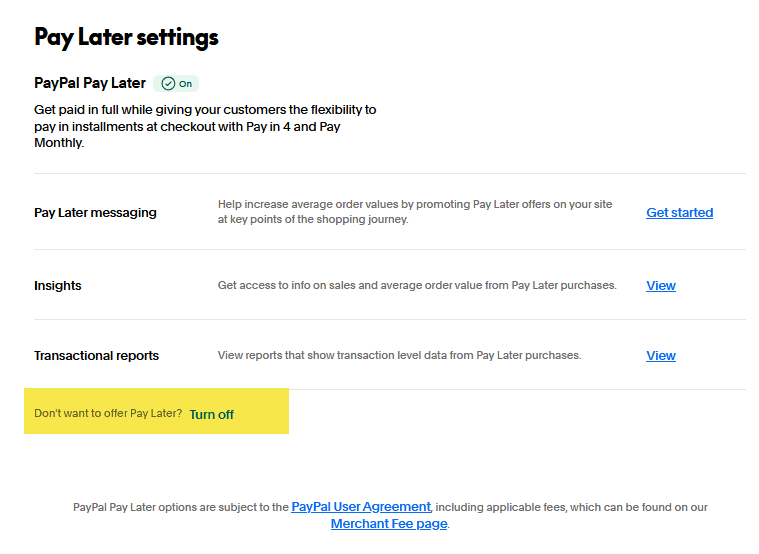 From the Pay Later settings section, there is a link