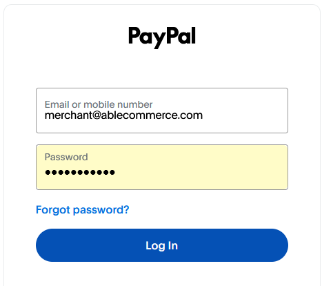 by logging in with your existing PayPal business account or