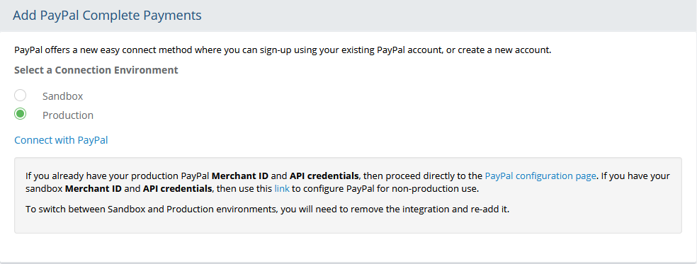 The PPCP payment gateway offers a new easy connect method where