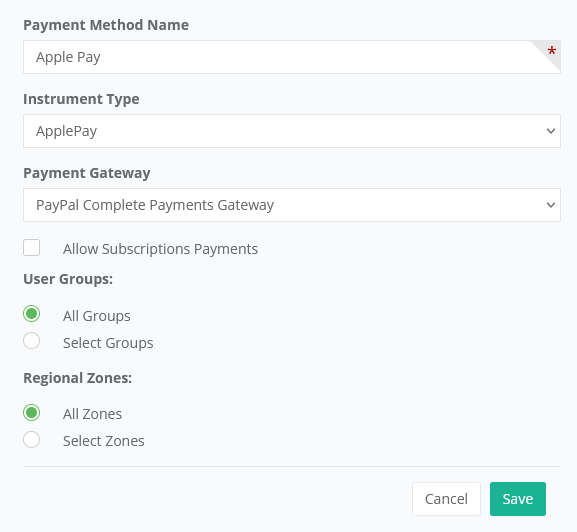 Type, select the "ApplePay" option.