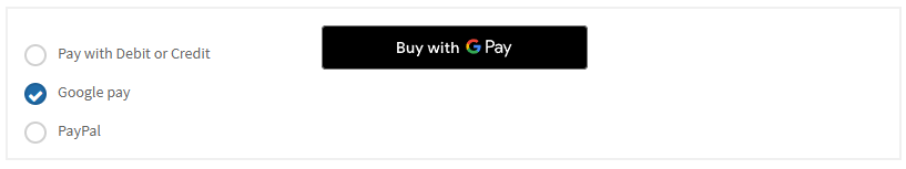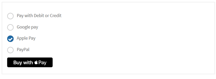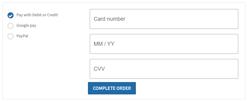 the payment form. (e.g. Pay with Debit or Credit)