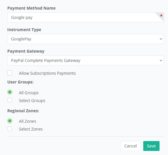 Method Name, enter Google Pay.