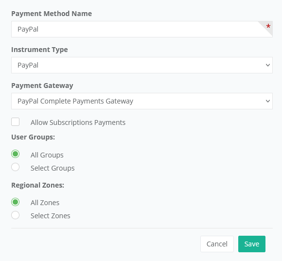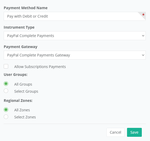 Gateway, select "PayPal Complete Payments Gateway"