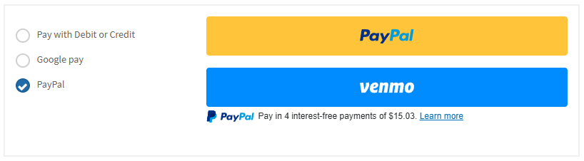 payment form. (e.g. PayPal or PayPal / Venmo)