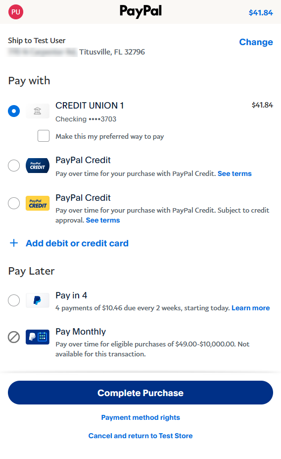 Type, select the "PayPal" option.
