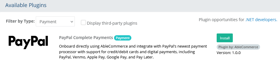 PayPal Complete Payments plugin will be available in the list