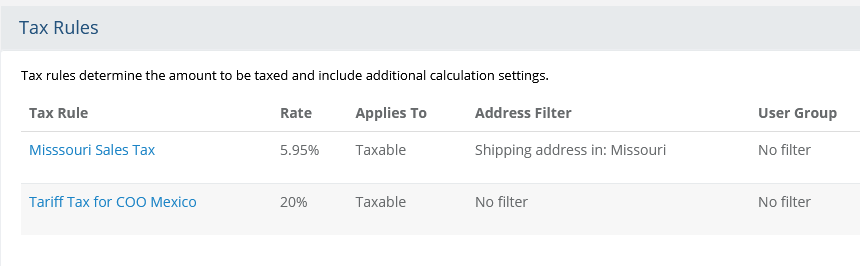 to a product type and based on the country of origin (CoO). AbleCommerce