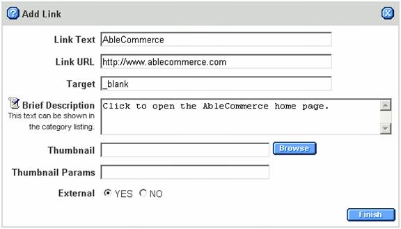 When you have finished entering the new link, click Finish to return to the category listing. You will see the new link at the end of the list.
