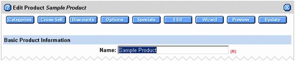 Next, edit the product that you want to link to the webpage. In our example store, we access the “Sample Category” on our category listing, then click the Edit icon for “Sample Product”. This will open the Edit Product screen.