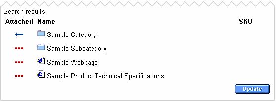 When this page first opens, it automatically searches for objects already linked with the product. In the image above, it shows that the “Sample Category” contains a link to “Sample Product”. That category contains (links to) this product.