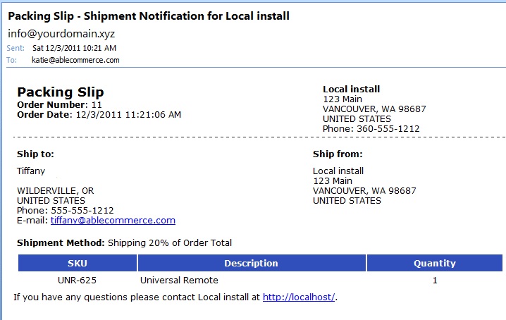The screenshot below is a sample of the default Vendor notification. In the email, only items that are related to the vendor will be shown. If an order has multiple vendors, then an email will be sent to each vendor associated with item(s) in the order.