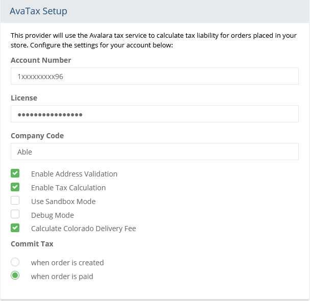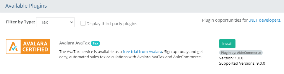Avalara AvaTax will be shown in the list as shown in the screenshot