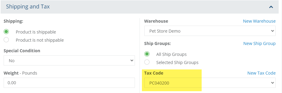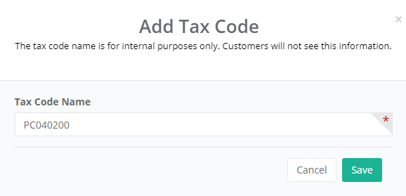 In the example figure above, the Add Tax Code pop-up shows PC040200